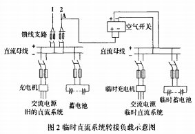 在對現場原有直流體系饋線網絡進行仔細核對后,擬定了替換計劃,整體的替換思路是:樹立一個簡易的暫時直流體系,使用暫時體系轉接負載。如圖2所示。